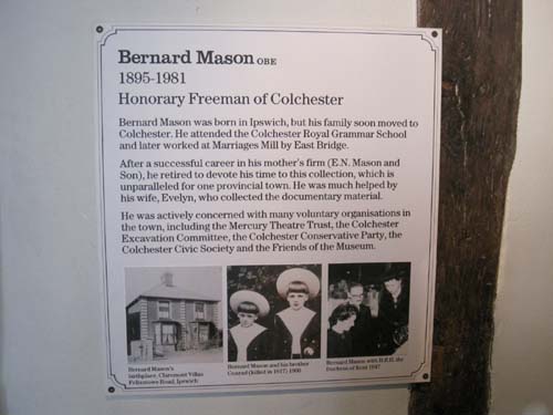 ...and some details about Bernard Mason, who once lived here and who donated the building and his clock collection to the people of Colchester.