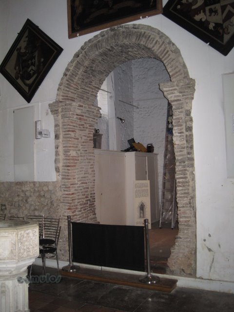 Holy Trinity church tower would once have stood as the focal feature in the town, for a few decades before the Normans came and built the castle. A stark contrast between Saxon and Norman architecture - unique in this country! The two pictures below show the above mentioned arrow head doorway that faces west onto Trinity Street, together with an internal archway, all making heavy use of Roman building materials from what was to be found more than 500 years after the Romans had left.