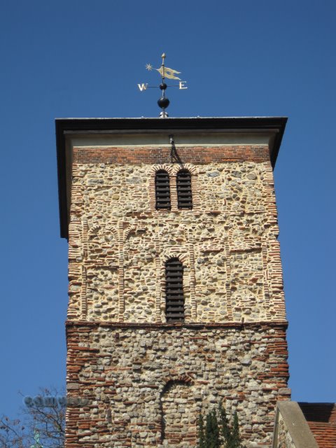 ....and so we leave Tymperleys and head back out to Trinity Street. Across the road is Holy Trinity church, the tower of which must be Colchester's oldest building, and certainly the tallest, when it was built in the Saxon period and style. Whether it was built as a church or as a lookout tower which later became a church, we will never know. The Domesday Book of 1086 does not mention it as a church!