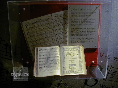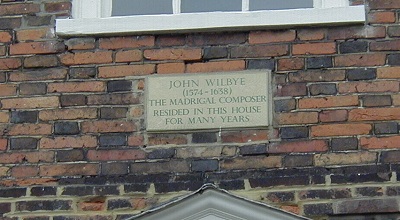 On one of our old buildings opposite Holy Trinity church is a plaque to John Wilbye (1574 - 1638), who wrote madrigals; part songs for several unaccompanied voices. He published two collections, one in 1598 and the other in 1608, comprising 64 madrigals. His best known is 'Flora, give me fairest flowers'. Wilbye came to live in Colchester as a music tutor and he was buried in Holy Trinity Church - as we think was William Gilberd.
