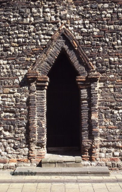 Holy Trinity church tower was built around the turn of the last millennium, around the year AD 1000. Its arrow head doorway and window apertures are typical of the Saxon period. The remainder of the church is of different periods up to Victorian and, until the 1990s, was the town's social history museum. You can see more views of it in the Colchester Images section of this website. Like St Martins church that we saw in an earlier part of our tour, this church has a hagioscope, and also became redundant and looking for a good use. The problem for any new occupant of these redundant churches is one of cold, damp, health and safety, fully repairing leases, ancient monument status, etc.