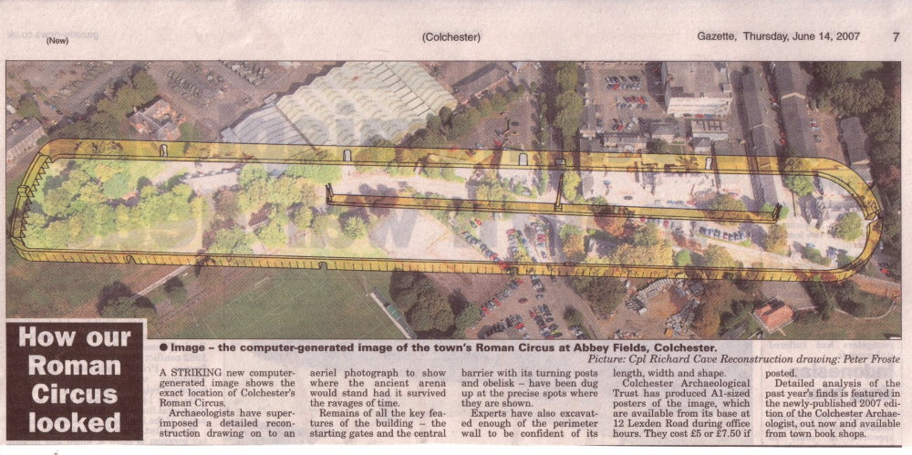 One huge discovery was made in 2004, that of the presence of a 2nd century Roman circus. That subject is dealt with under Colchester's Roman Circus within this web site, although full details of the current situation requires you to leave Camulos and visit www.romancircus.co.uk.