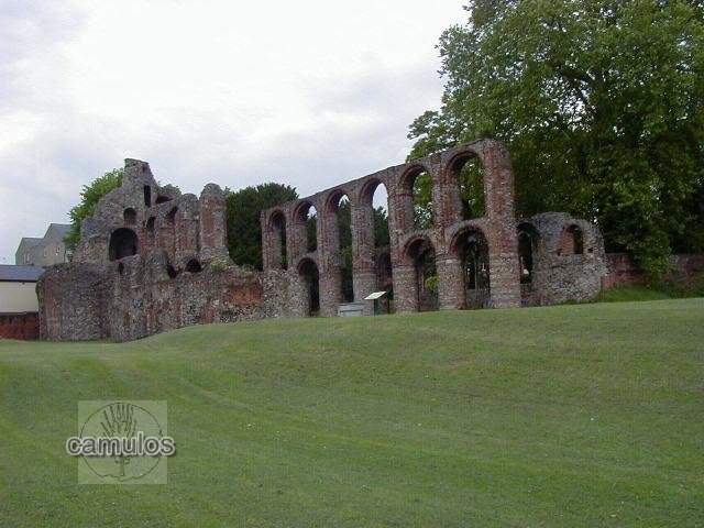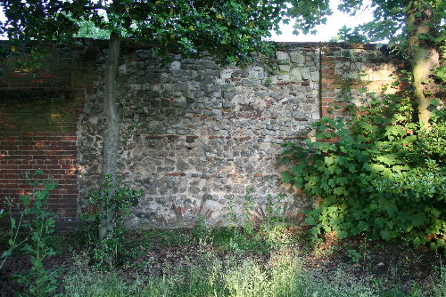 The above is a view through the perimeter fence of a section of the abbey wall that was scheduled in the 2010s, such was its importance. Its position is directly over the east end of the 'spina' that, some 1800 or so years ago, was part of the recently discovered Roman circus. For more details of that amazing discovery, please go to the Colchester Roman Circus section. All of this area (in 2016) was part of a site that was being developed for other uses, since the garrison had moved away to another part of the town.