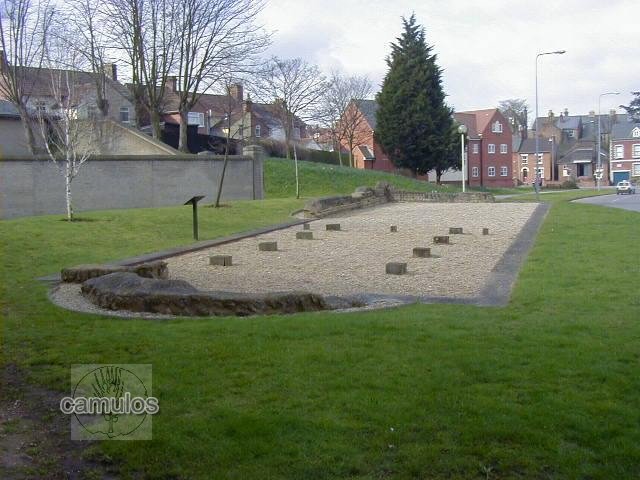 At the foot of the park, on the north face of the Roman wall, was discovered a postern gate, named Duncan's Gate, in memory of the Victorian gentleman who discovered it. It is closed off to the public because of its poor condition and because of the presence of an impressive drain that passes underneath it. This drain is at least 100 metres in length and runs up the hill towards the castle. Some time in antiquity, probably in the last years of the Roman period, it appears that the gateway was destroyed by fire, the top archway of the structure collapsing and still laying where it fell. The steps shown are a modern addition.