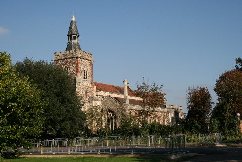 A view from the south west. The church graveyard was converted into a car park and many of the graves were desecrated and removed elsewhere, including the remains of the Lucas family.