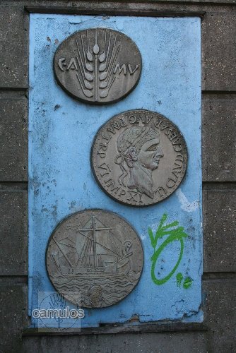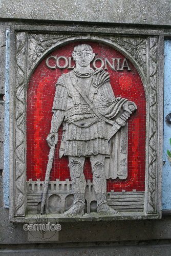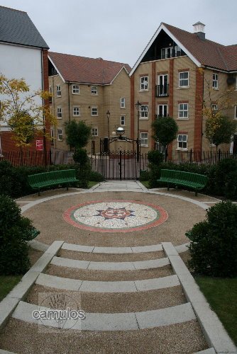 Just a short distance away from these sculptures, up the hill and into the recently built 'Balkerne Heights' development, is to be found this very attractive communal area and, in particular the modern mosaic that is its focal point. This piece of Roman style work, created by Ann Schwegmann-Fielding, was unveiled by the Mayor of Colchester in June 2006 (ECS 090606).