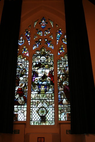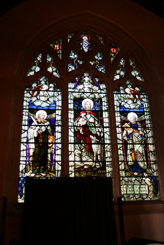 The church has many fine stained glass windows (presumably from the Victorian period).