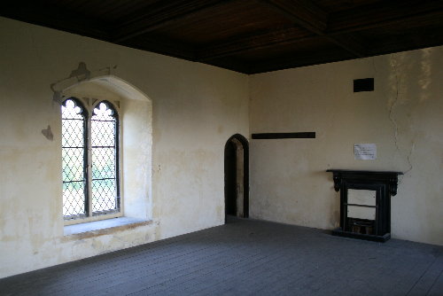 This is a view inside the room above although this was a result of the substantial refurbishment of the gateway done in the 1870s, when the building was in a very poor state of repair. The room is accessed by a very narrow spiral staircase.