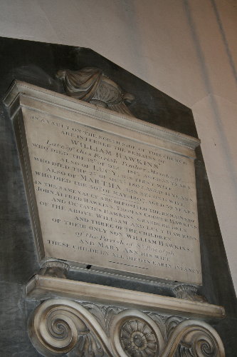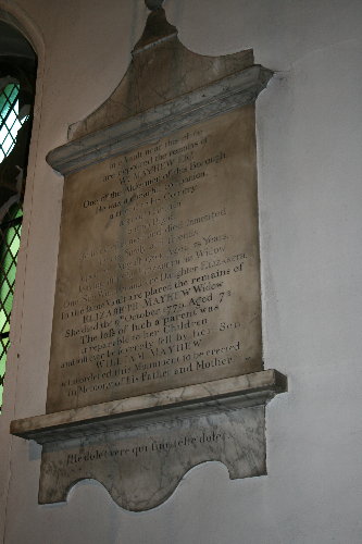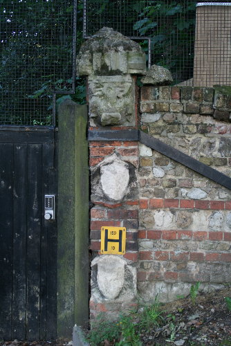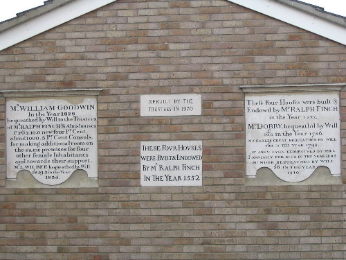 ...can be seen restored monumental inscriptions taken from Finch's Almshouses that once stood on the site and which were built into the wall of one of the newly constructed houses.