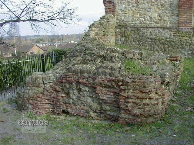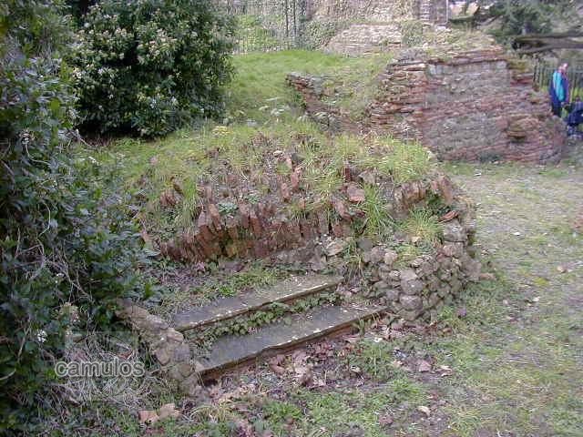 A short distance away may be seen a section of the perimeter wall that would have formed a boundary around the Claudian temple, the site of which lies under our magnificent Norman castle, as seen in the background. In order to make a pretty pathway, this archaeological treasure was broken up. It would never be allowed to happen today! Indeed this section of teh temple wall passes under the later Norman castle bailey, and we must assume that the rest of it is still intact.