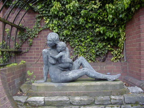 A short way to the south is a beautiful sculpture by local sculptor Shirley Morrison entitled 'Mother and Child'. It was placed into a specially constructed 'grotto' shortly after the statue was created in the 1980s. Why this choice of subject was made, we do not know.