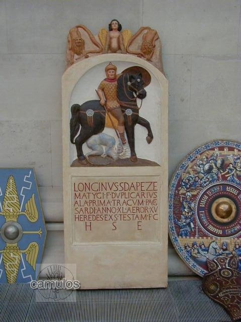 Or, in other words, Longinus Sdapeze was the second in command of a Thracian cavalry unit, an auxilary soldier (not a Roman, but a mercenary soldier). Longinus was his Roman name, Sdapeze was his tribal name. He died in Colchester after fifteen years of service to the Roman army. It indicates that the 40 year old Longinus was born in the area of the modern day Sofia, capital city of Bulgaria. It reveals that he was a duplicarius, one of the highest paid cavalry positions. His heirs erected the tombstone, according to his will, probably funded from the contributions given by fellow soldiers to provide such a stone. Longinus died around AD 49, soon after the invasion in 43, suggesting that he may have come to Britain with Claudius's invasion force, and possibly marched into Colchester in the emperor's procession. It is the oldest Roman gravestone in Britain.