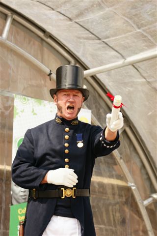 This tradition was revived on 1st December 2010 when the Mayor of Colchester, Councillor Sonia Lewis invited the Town Crier to re-create the proclamation as part of her Mayor's Charity Evening in the town centre. Born at Coggeshall in 1851 and raised by his newagent uncle William and aunt Mary, by the time he was nine years old John was working in the family business at Sudbury. When the family moved to premises in George St. Colchester he continued to be employed by his uncle in the newsagent's business. John married Grace Sarah Simms at St. Martins Church, Colchester in 1874, together they had seven children, all supported by John's activites in the newspaper agency. As an extra he would progress around Colchester town centre with bill boards advertising local shop wares. His uncle William died on Jan 1st 1883 and although literate it was only then he discovered the family name was Everett and not Everitt. All his children had been registered as Everitt but the last son born in 1883 was registered as Everett and John used that spelling thereafter. In 1900 the post of Colchester Town Crier became vacant and John was appointed. He was the last official crier of the medieval line; a post he held until his death in July 1917. He was a Colour Sergeant in the local militia, based at Stanwell St, Colchester and, during the Great War, 1914-1918 acted as recruiting sergeant for Colchester.